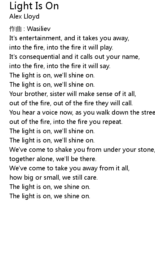 | The light is on, we' ll shine on. | |