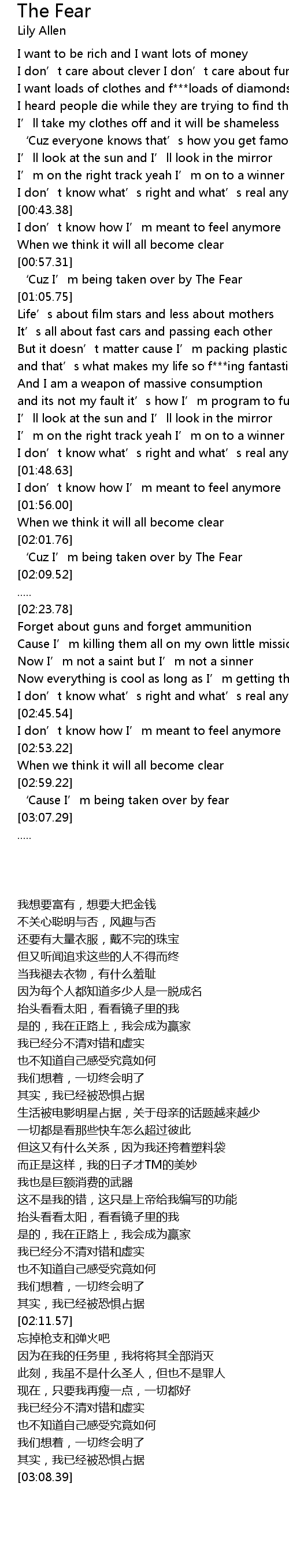 | [02:03.26] | ' Cuz I' m being taken over by The Fear |