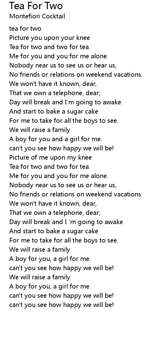 Tea for two and two for tea. |