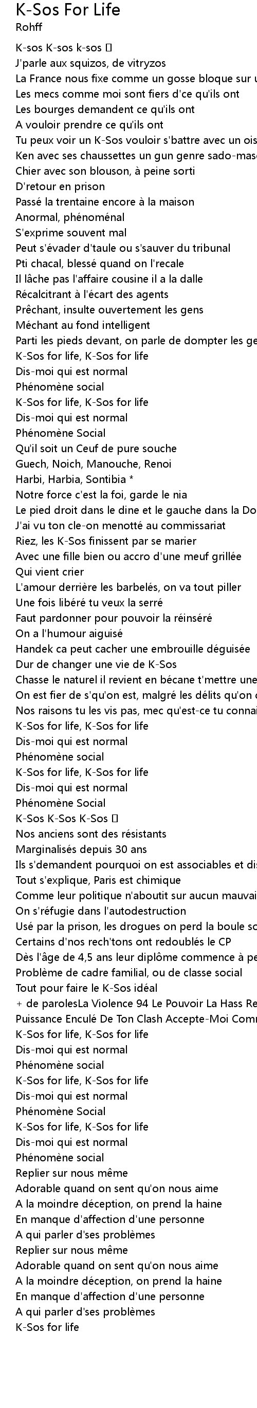 | de parolesLa Violence 94 Le Pouvoir La Hass Regretté En Mode 2 Code 187 La Puissance Enculé De Ton Clash AccepteMoi Comme Je Suis | |