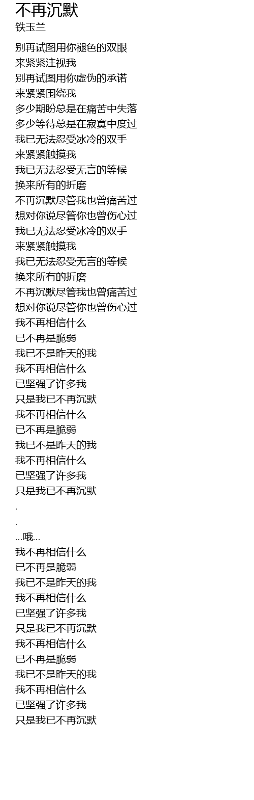 | [01:34.71] | 不再沉默尽管我也曾痛苦过 |