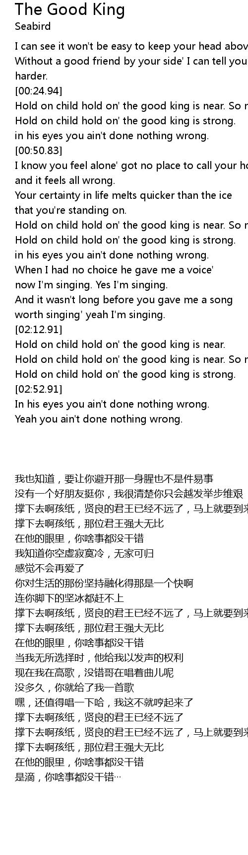 Hold on child hold on' the good king is strong. |