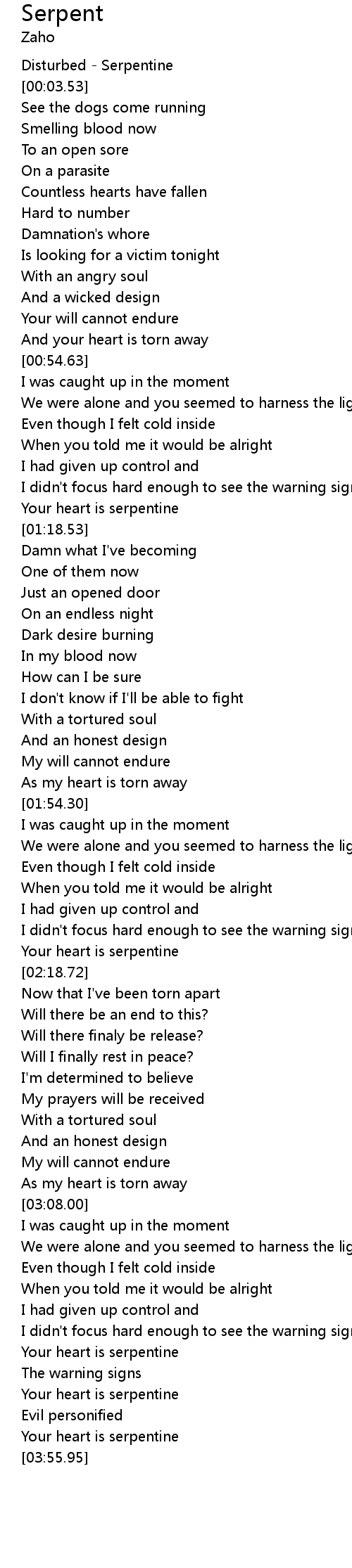 | [03:27.69] | Your heart is serpentine |