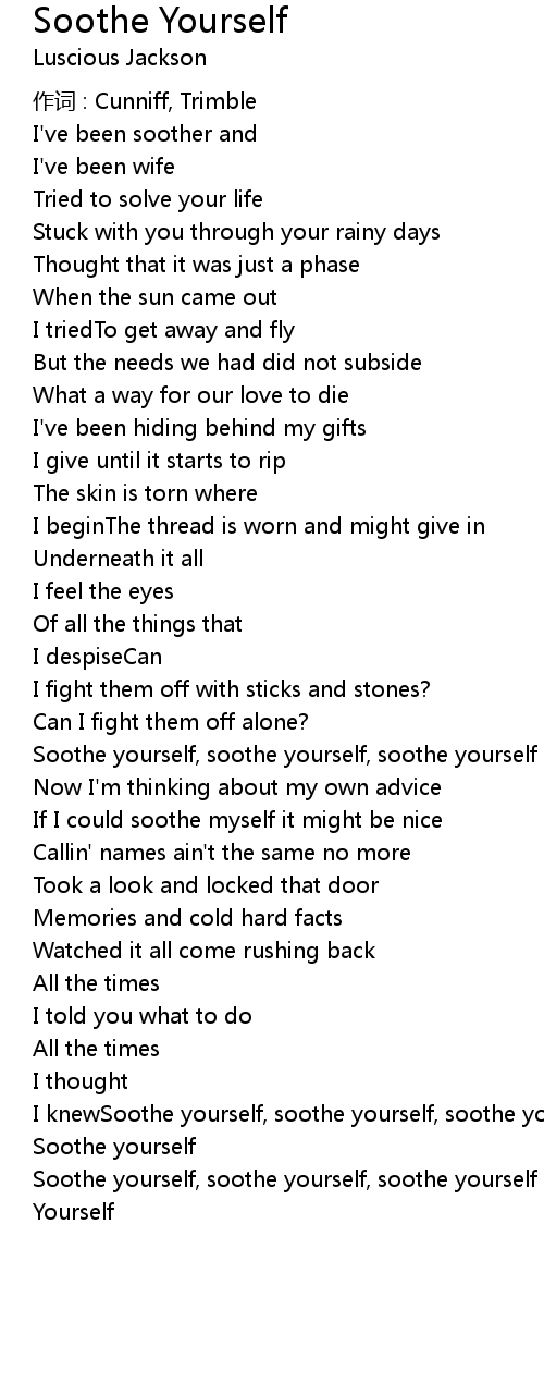 | Soothe yourself, soothe yourself, soothe yourself | |