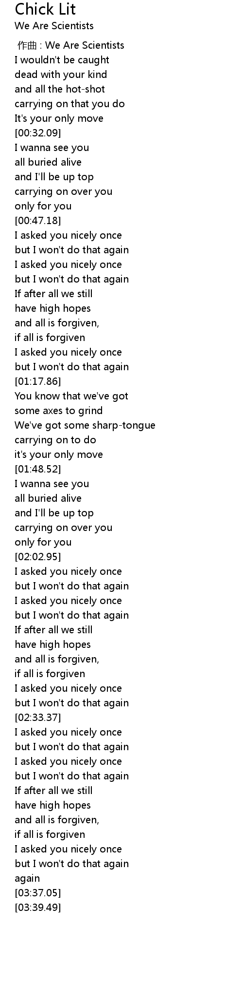 | [00:00.00] | 作曲 : We Are Scientists |