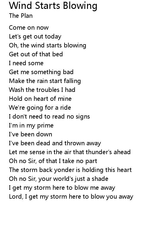 | Oh, the wind starts blowing | |