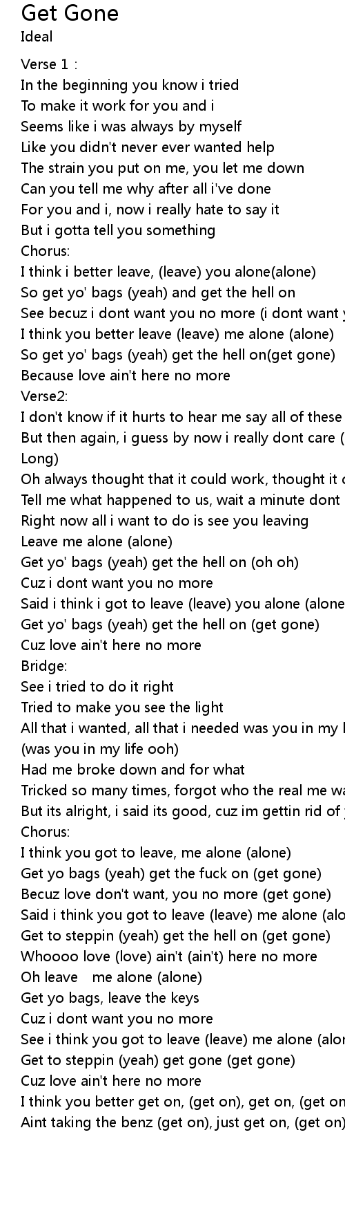 | I think you got to leave, me alone alone | |