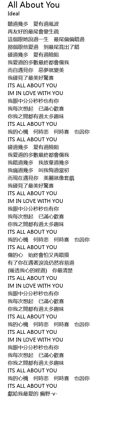 | [01:55.00] | ITS ALL ABOUT YOU |