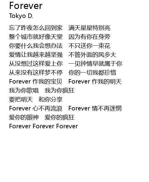 | Forever zuò wǒ de bǎo bèi Forever zuò wǒ de míng tiān | |