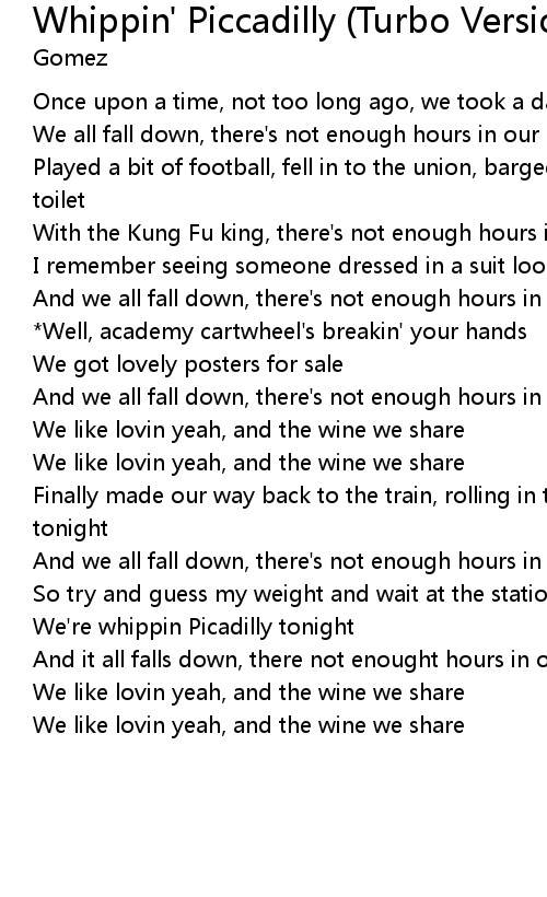 We're whippin Picadilly tonight |