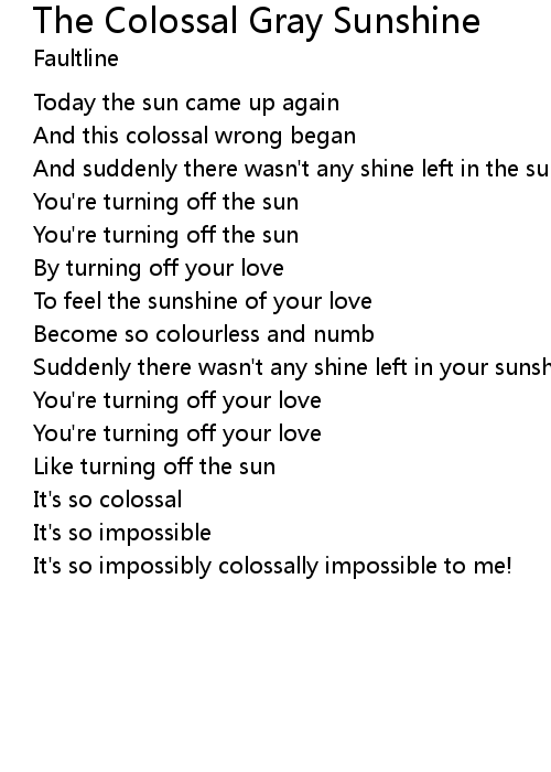 | Song | The Colossal Gray Sunshine |