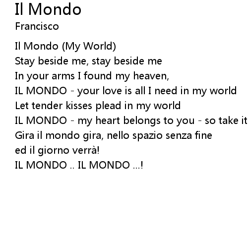 | [00:00:34] | IL MONDO your love is all I need in my world |