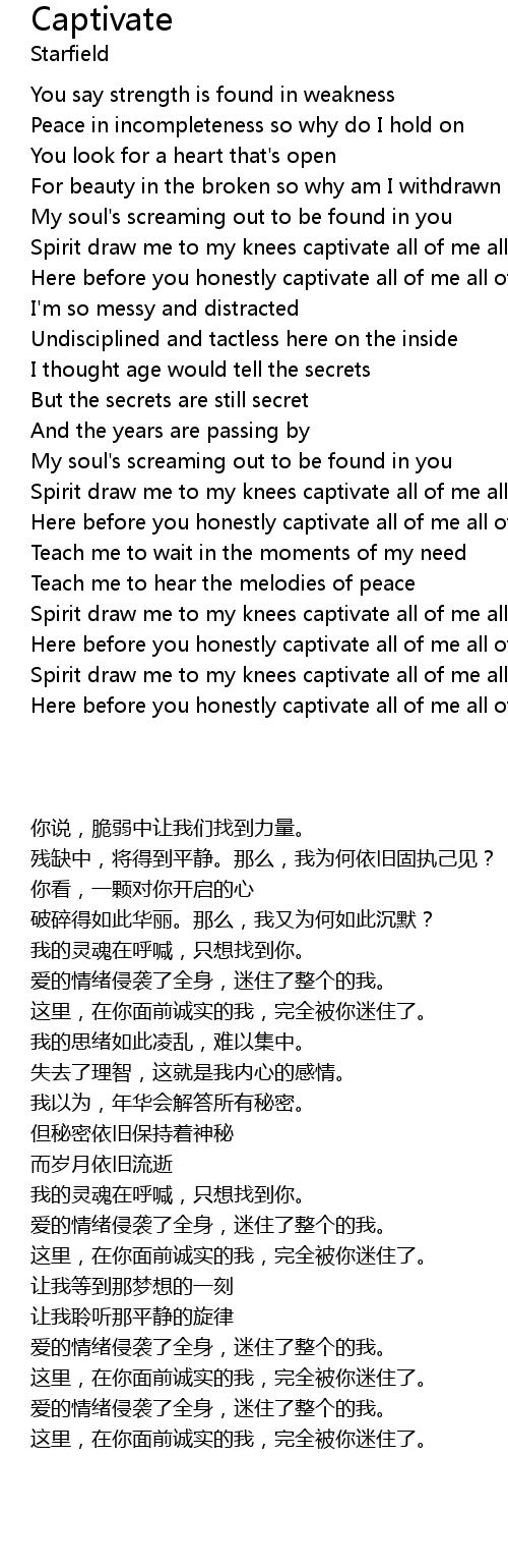 Spirit draw me to my knees captivate all of me all of me |