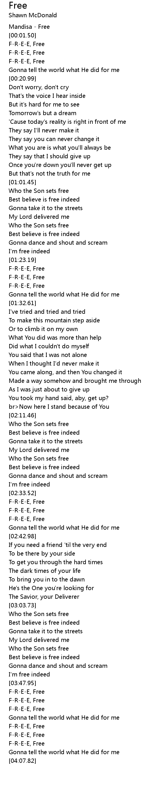 [00:00.00] Mandisa - Free
