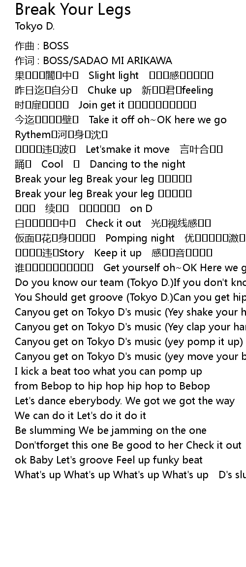 | Canyou get on Tokyo D' s music Yey shake your hip | |