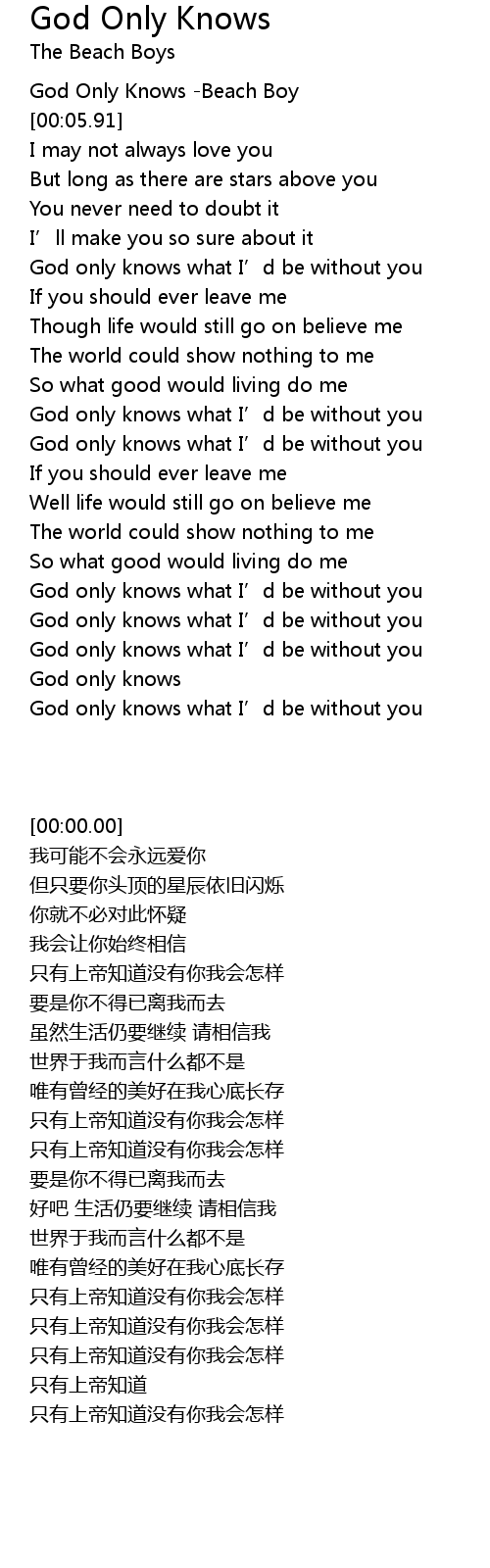 | [00:35.03] | God only knows what I' d be without you |