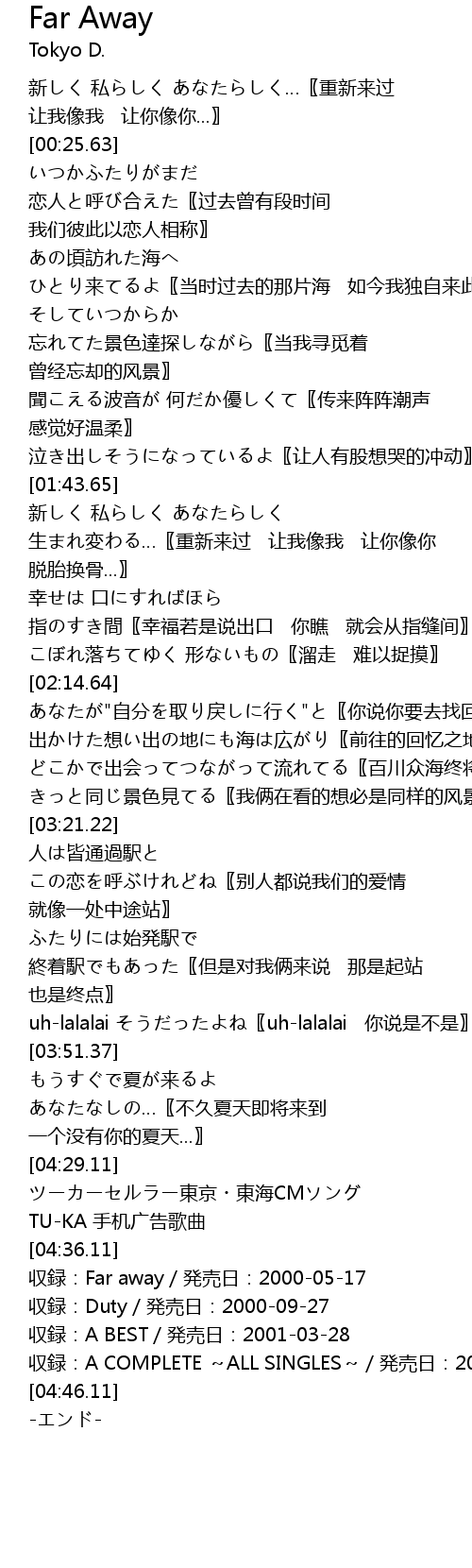 | [04:38.11] | 収録:Far away/発売日:2000-05-17 |