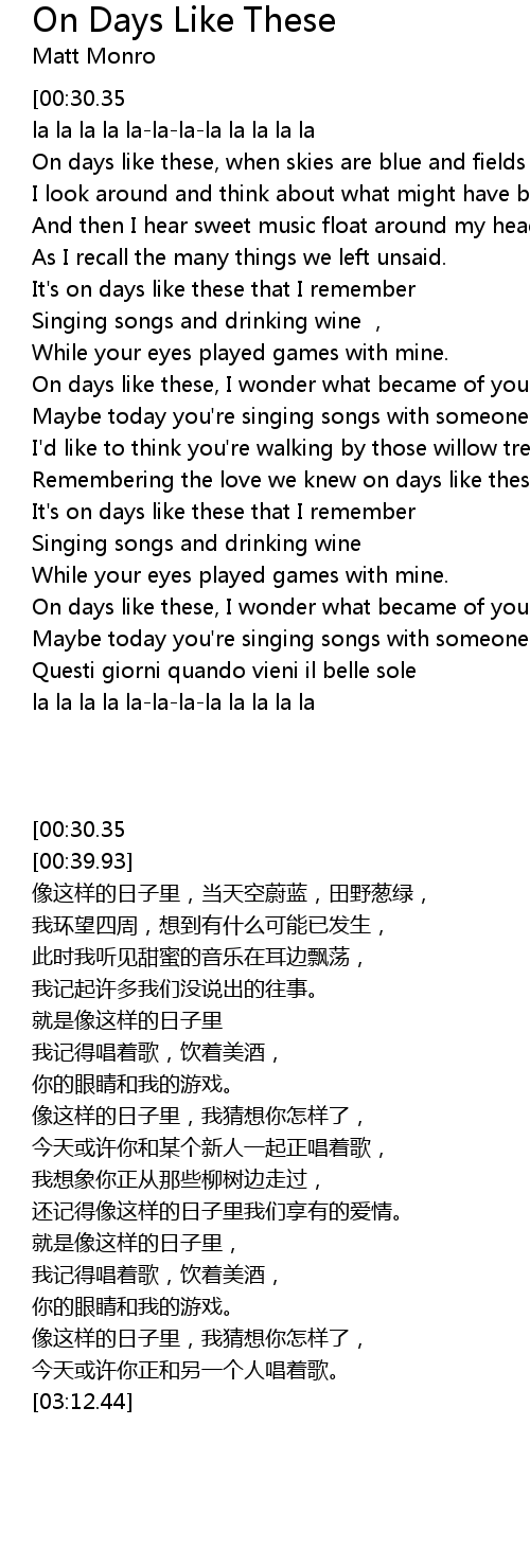 | [02:21.97] | Remembering the love we knew on days like these. |