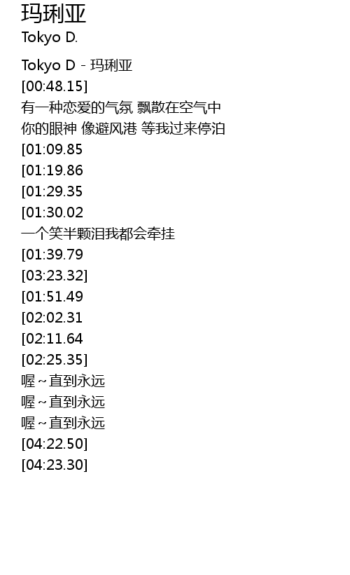 | [00:00.00] | Tokyo D - 玛琍亚 |