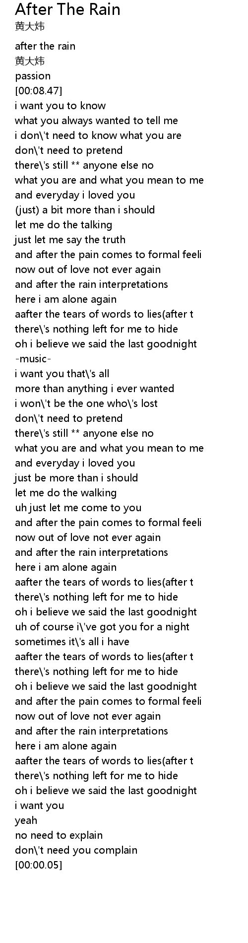 | [03:42.54] | aafter the tears of words to lies after t |