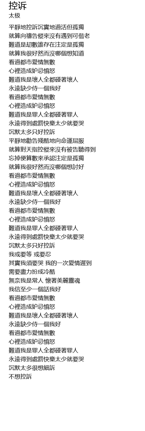 | 沉默太多只好控訴 | |