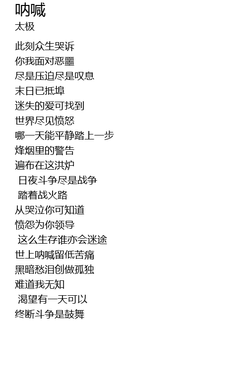 | [01:35.340] | 终断斗争是鼓舞 |