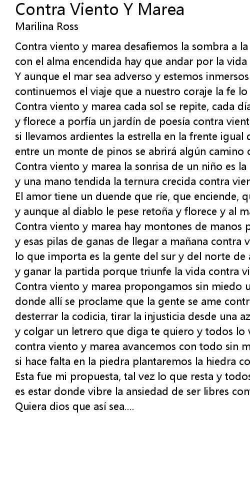 | con el alma encendida hay que andar por la vida contra viento y marea. | |