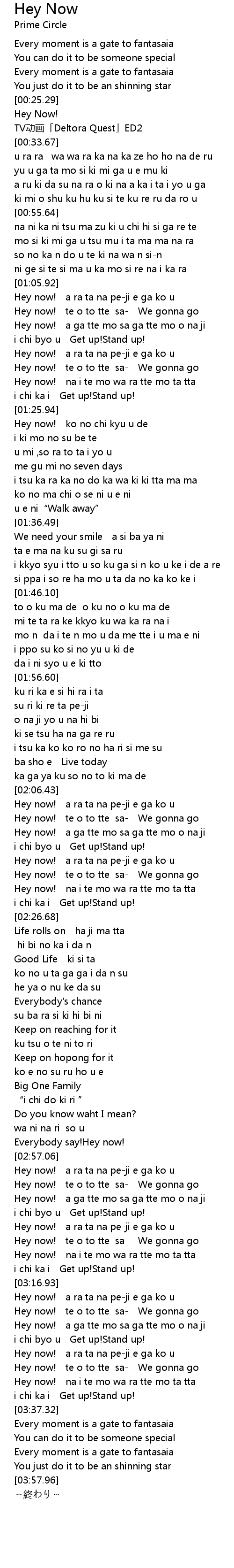 | [02:08.89] | Hey now! te o to tte sa We gonna go |