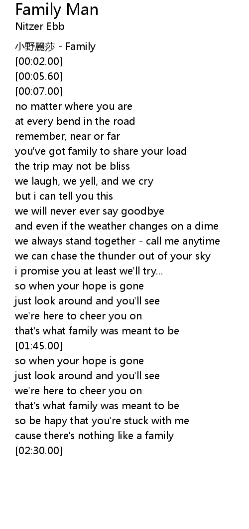 | [02:28.00] | cause there's nothing like a family |