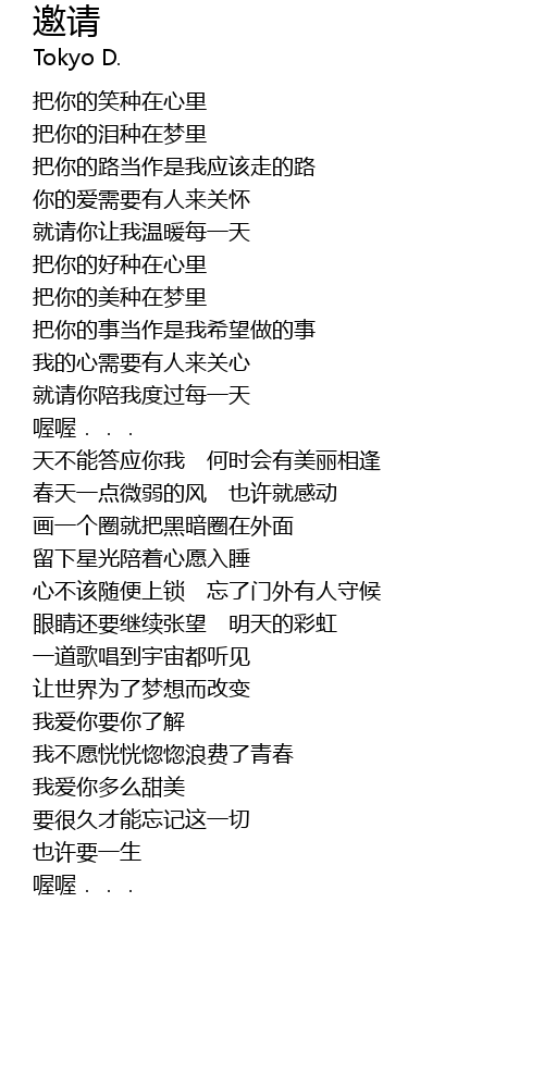 | jiù qǐng nǐ péi wǒ dù guò měi yì tiān | |