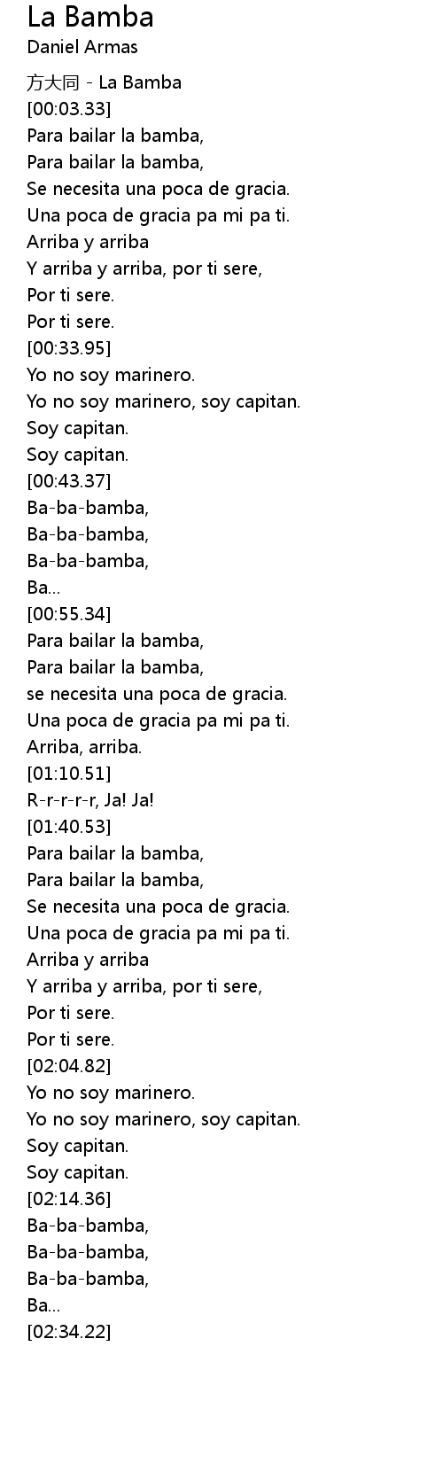 | [02:14.96] | Ba-ba-bamba, |