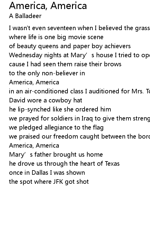 | Song | America, America |