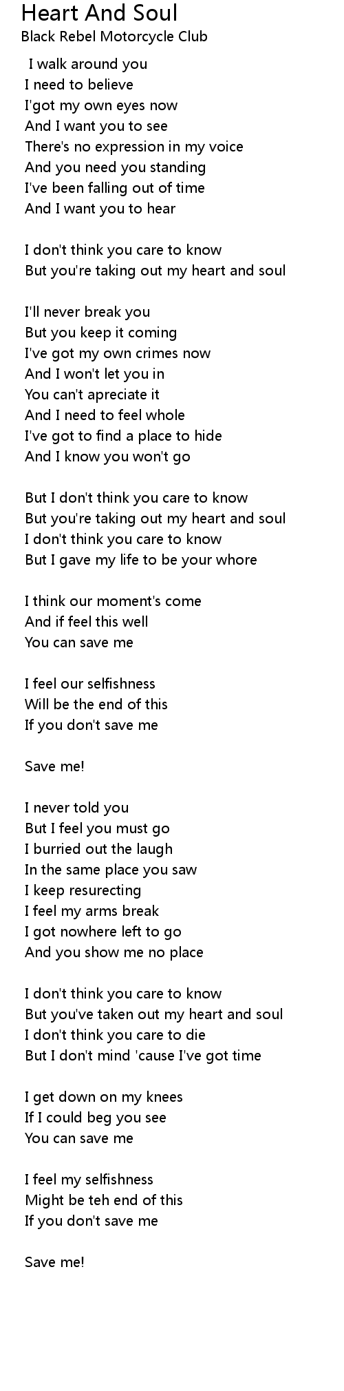 But you've taken out my heart and soul |