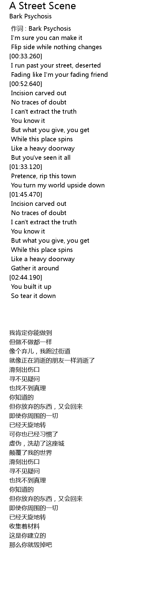 | [00:00.00] | 作词 : Bark Psychosis |