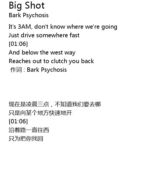 | [00:00.00] | 作词 : Bark Psychosis |