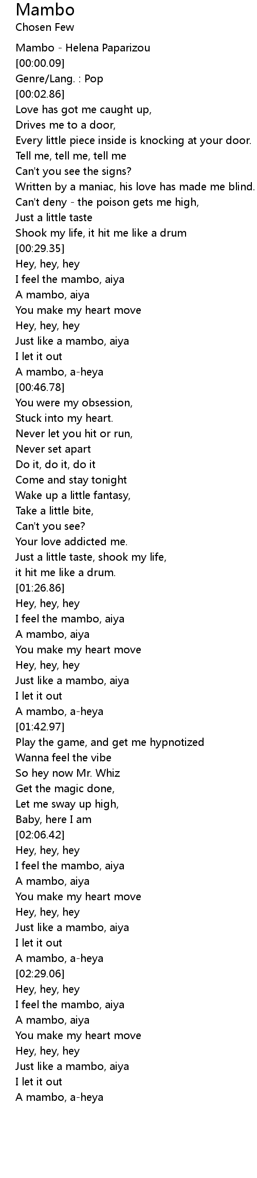 I feel the mambo, aiya |
