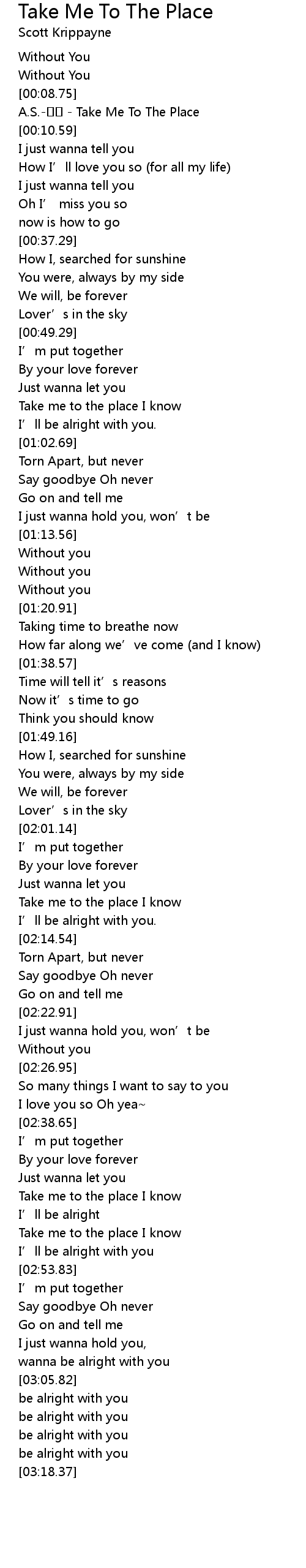 | [03:03.50] | wanna be alright with you |
