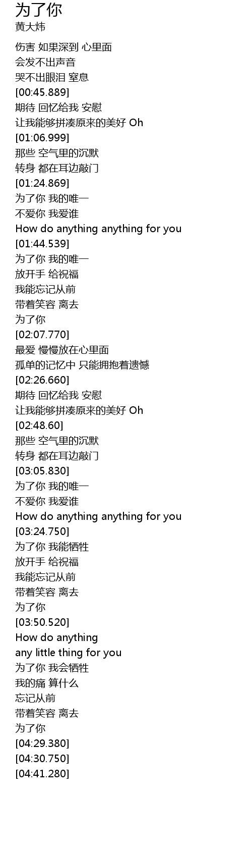 | [03:43.290] | 为了你 |