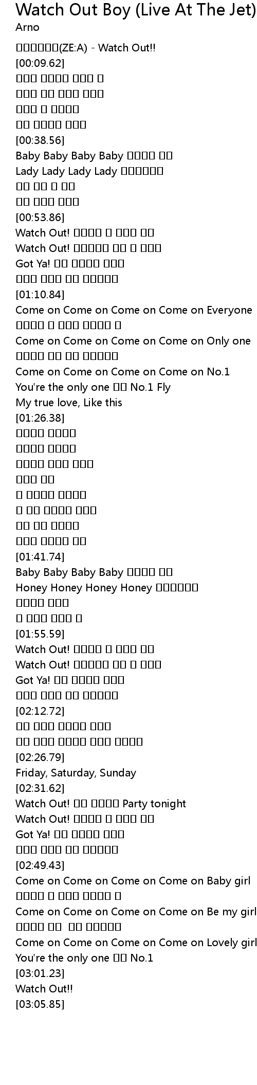 | [02:37.70] | Watch Out! 사랑하는 니 남자가 왔어 |