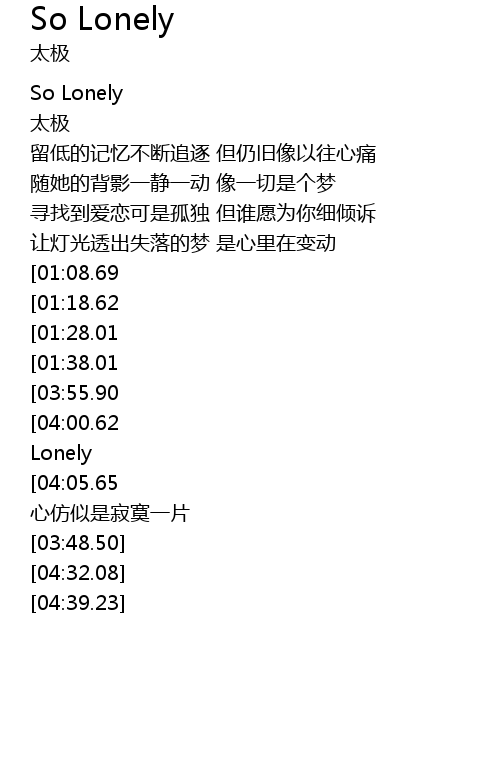 [04:15.25][03:55.90][03:31.66][03:11.98][02:08.94][01:49.67] So Lonely So Lonely