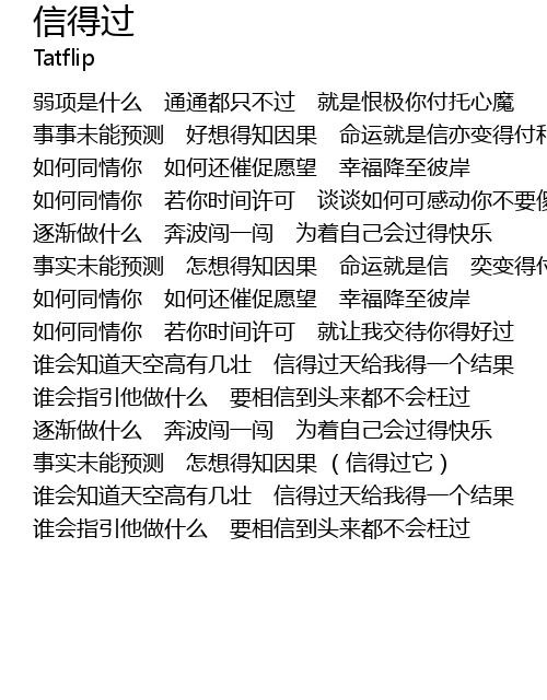| [01:19.70] | shì shí wèi néng yù cè zěn xiǎng dé zhī yīn guǒ mìng yùn jiù shì xìn yì biàn de fù hé |