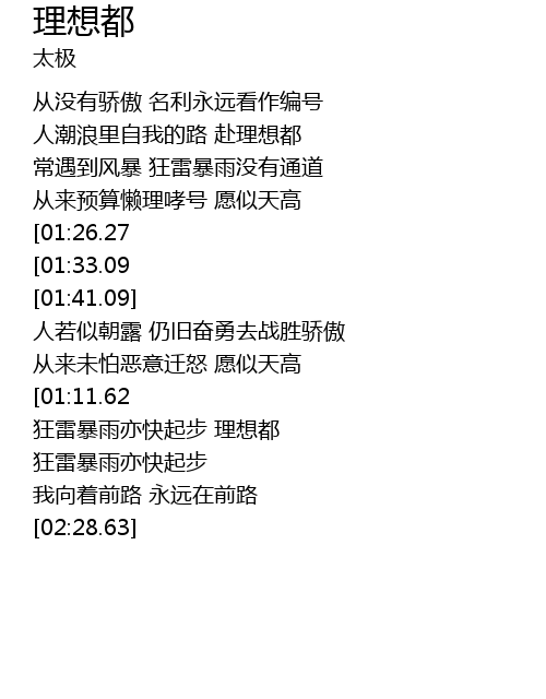 | [01:18.67] | 狂雷暴雨亦快起步 理想都 |