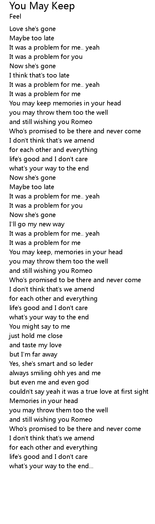 | You may keep, memories in your head | |