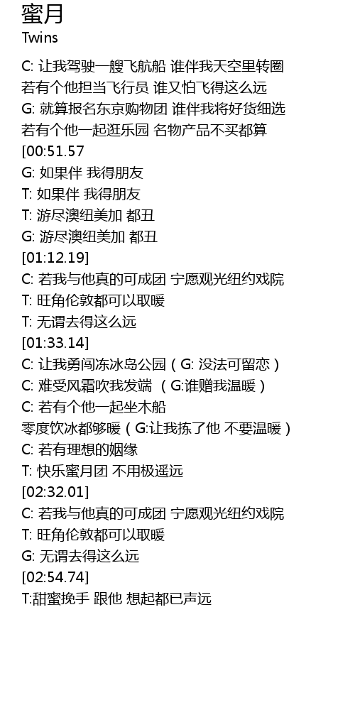 | [02:05.59] | T: 快乐蜜月团 不用极遥远 |