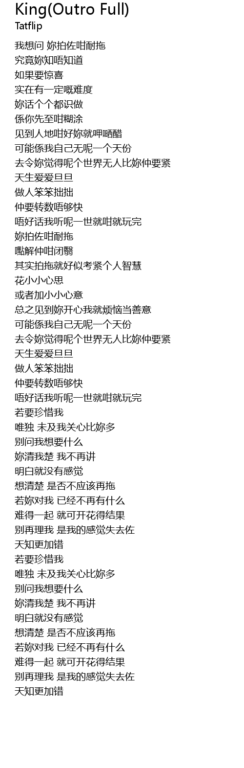 | [00:39.70] | 去令妳觉得呢个世界无人比妳仲要紧 |