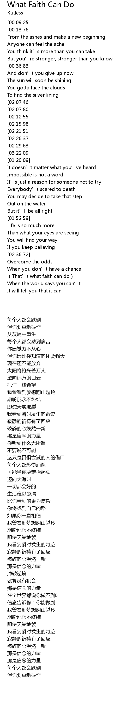 | [03:29.23][03:22.09][02:33.46][01:16.96] | That' s what faith can do |