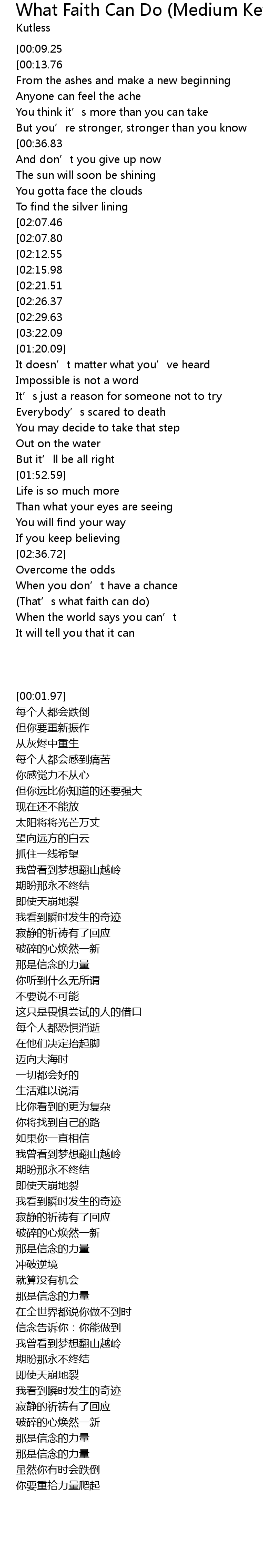 | [03:29.23][03:22.09][02:33.46][01:16.96] | That' s what faith can do |