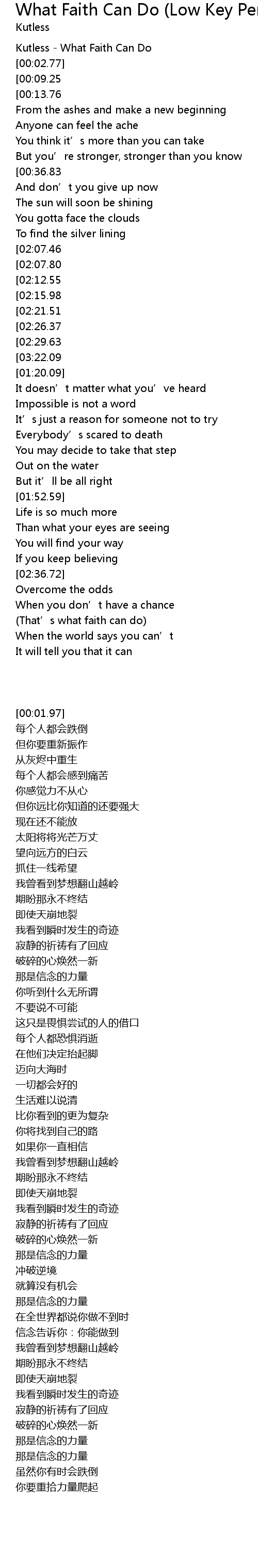 | [00:01.97] | Kutless - What Faith Can Do |