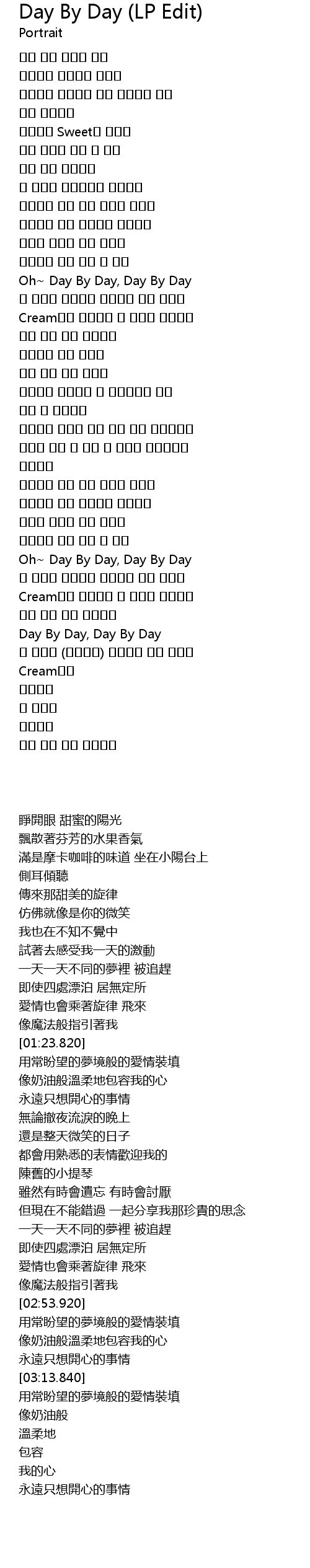 | [02:53.920] | Oh~ Day By Day, Day By Day |