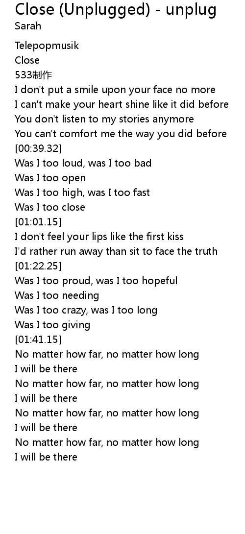| Song | Close (Unplugged) - unplug |
